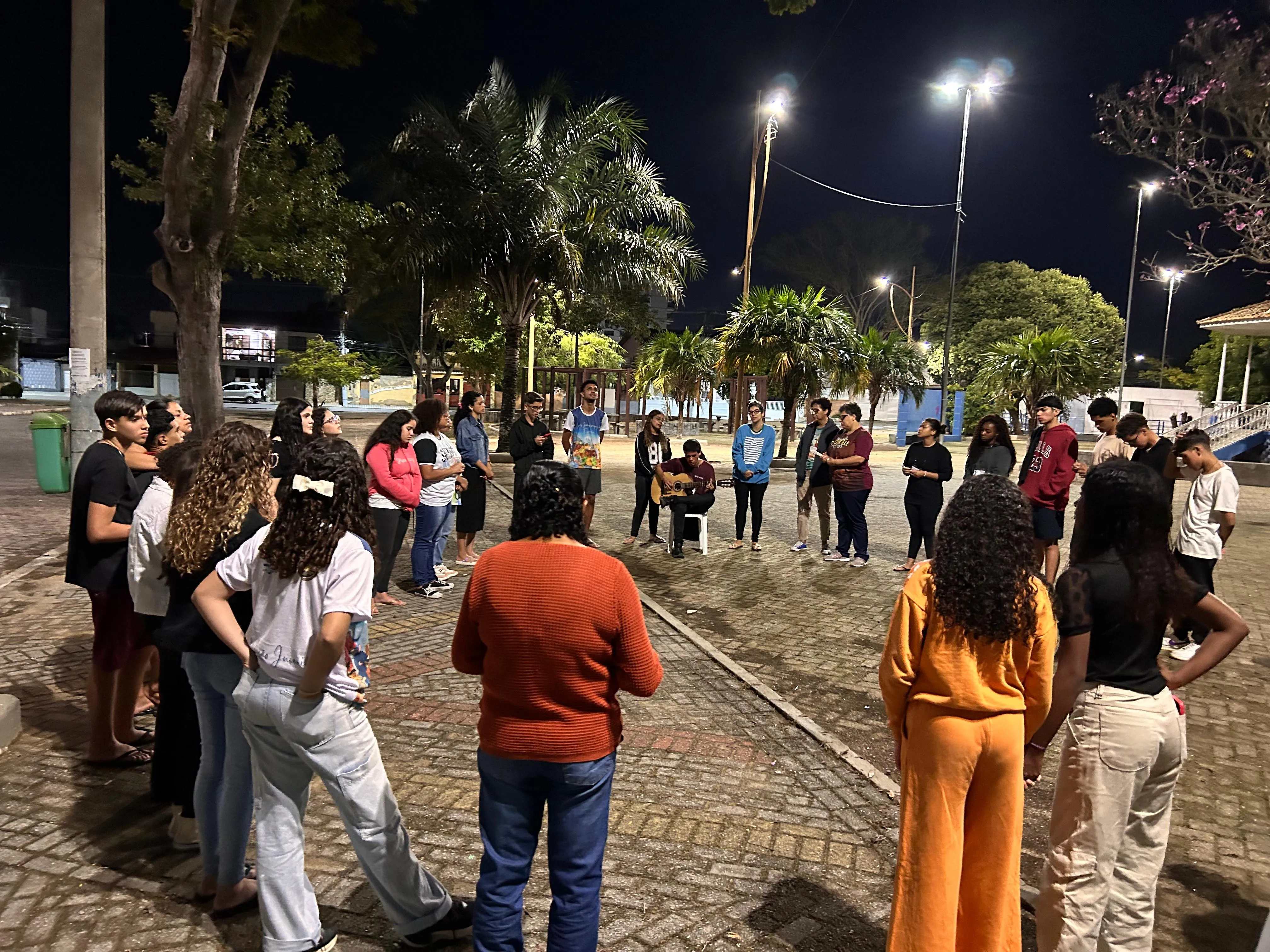 Nesses encontros, promovemos momentos de encontro com Cristo, incentivamos o protagonismo juvenil